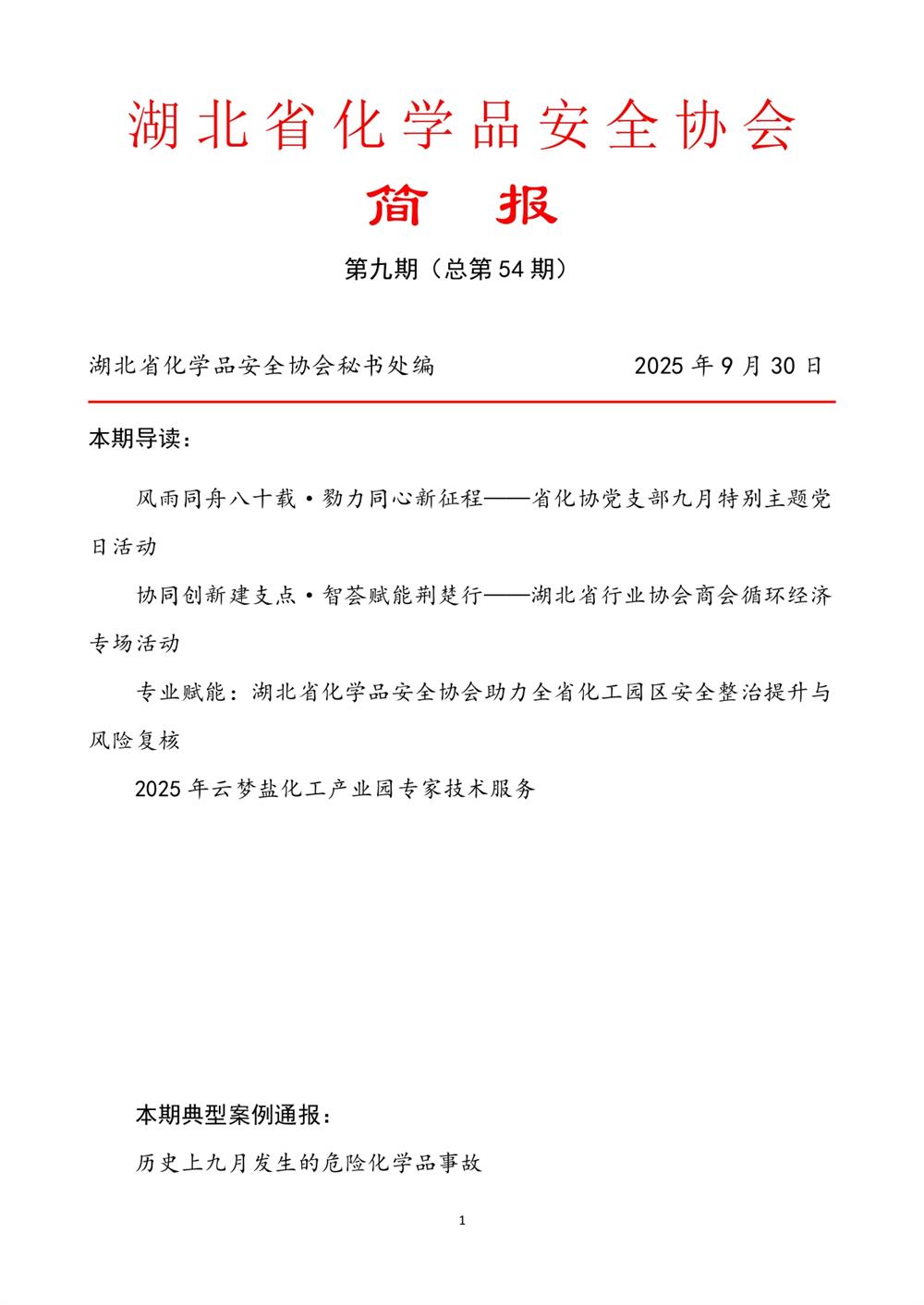湖北省化學(xué)品安全協(xié)會 簡 報 第九期(總第54期)